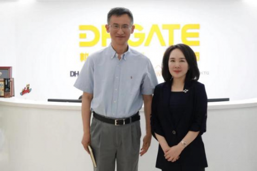 敦煌网集团创始人兼董事长王树彤女士与清华大学五道口金融学院鞠建东教授合影